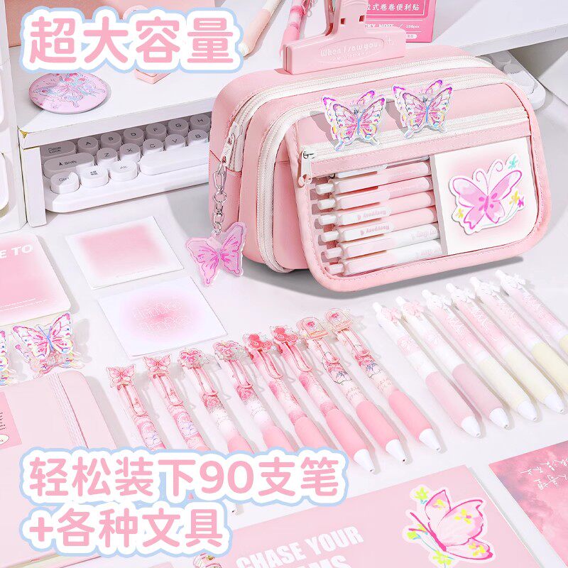 九层撞色蝴蝶笔袋可爱高颜值礼袋ins风开学礼物礼包2026新款文具盒女孩大容量铅笔盒小学生女生文具袋男孩款