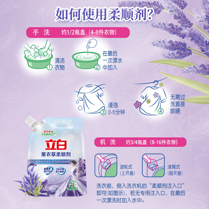 立白衣物柔顺剂薰衣草香持久留香衣服护理剂防静电洗衣去静电香氛