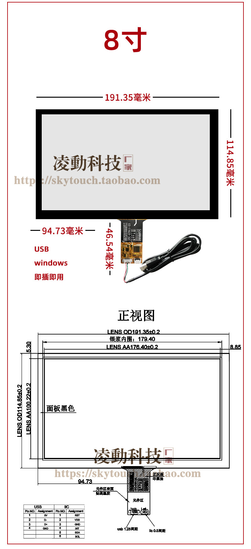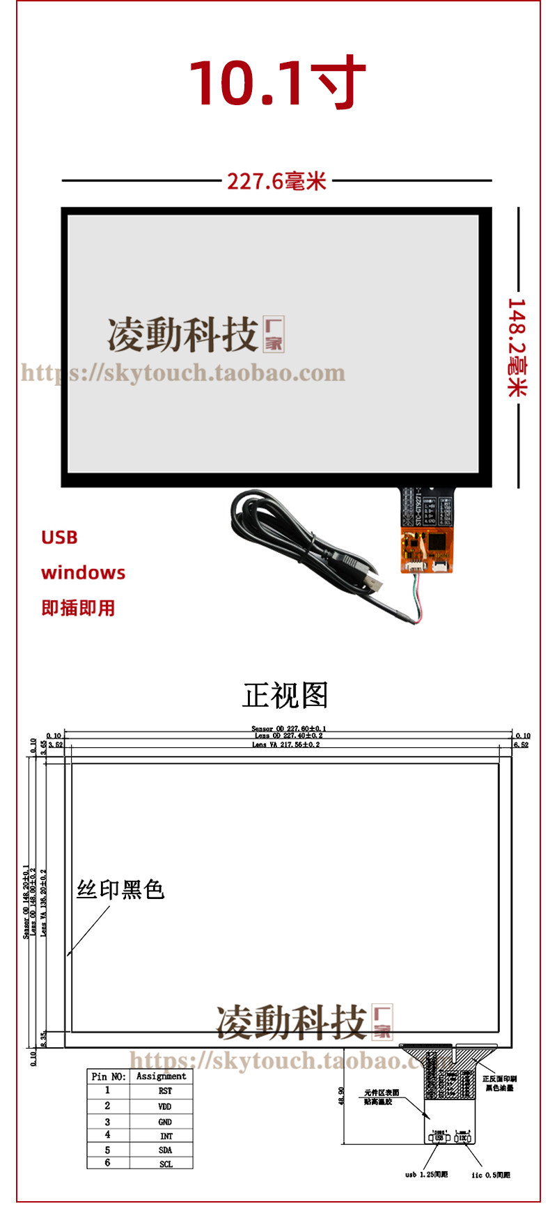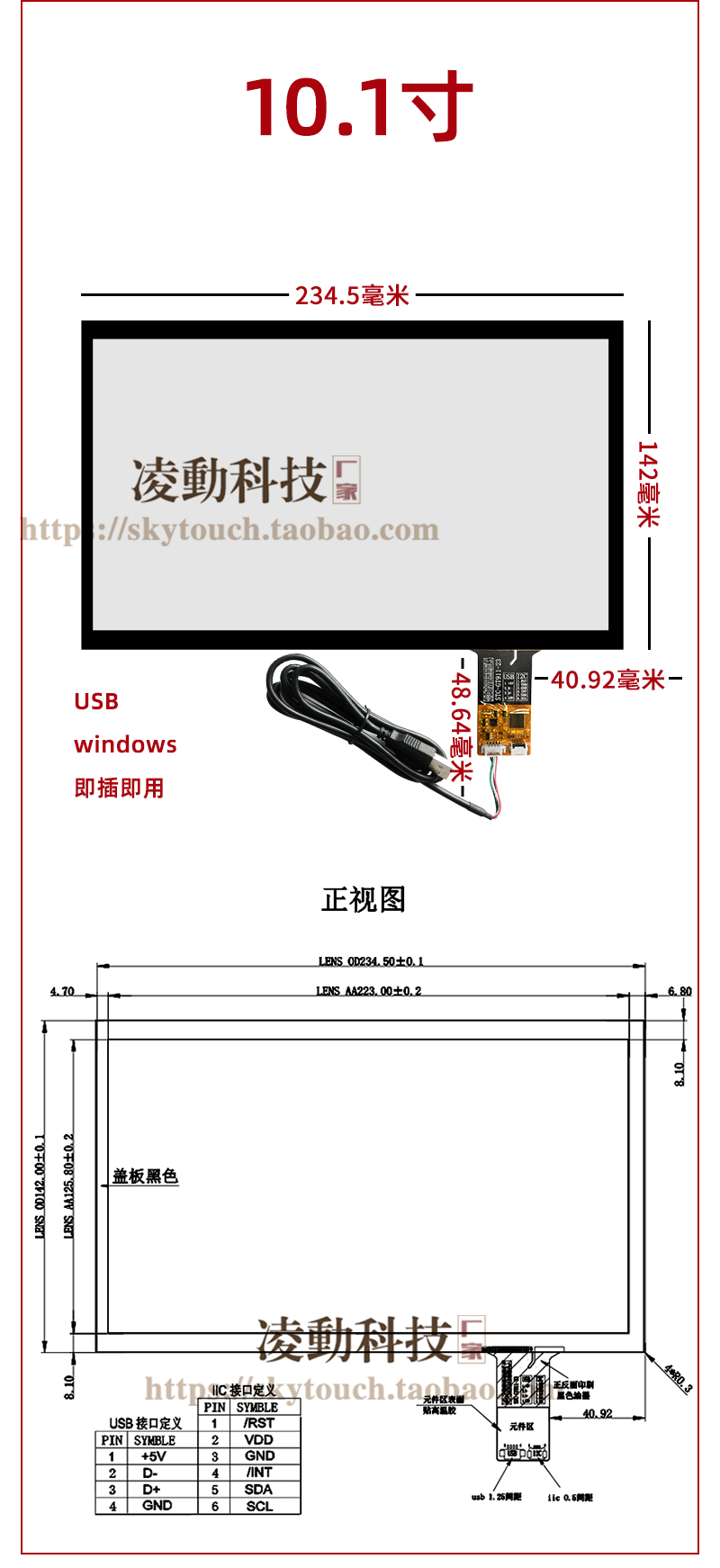 工业电容屏 USB免驱即插即用4.3/5/6.2/7/8/9/10.1寸触摸板可定制