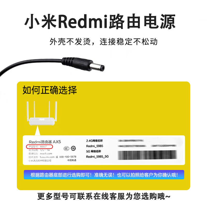 金陵声宝适用小米Redmi路由器电源线ax3000 ac2100 ax6000 4a千兆版ax3600 ax1800 4pro电源适配器充电器