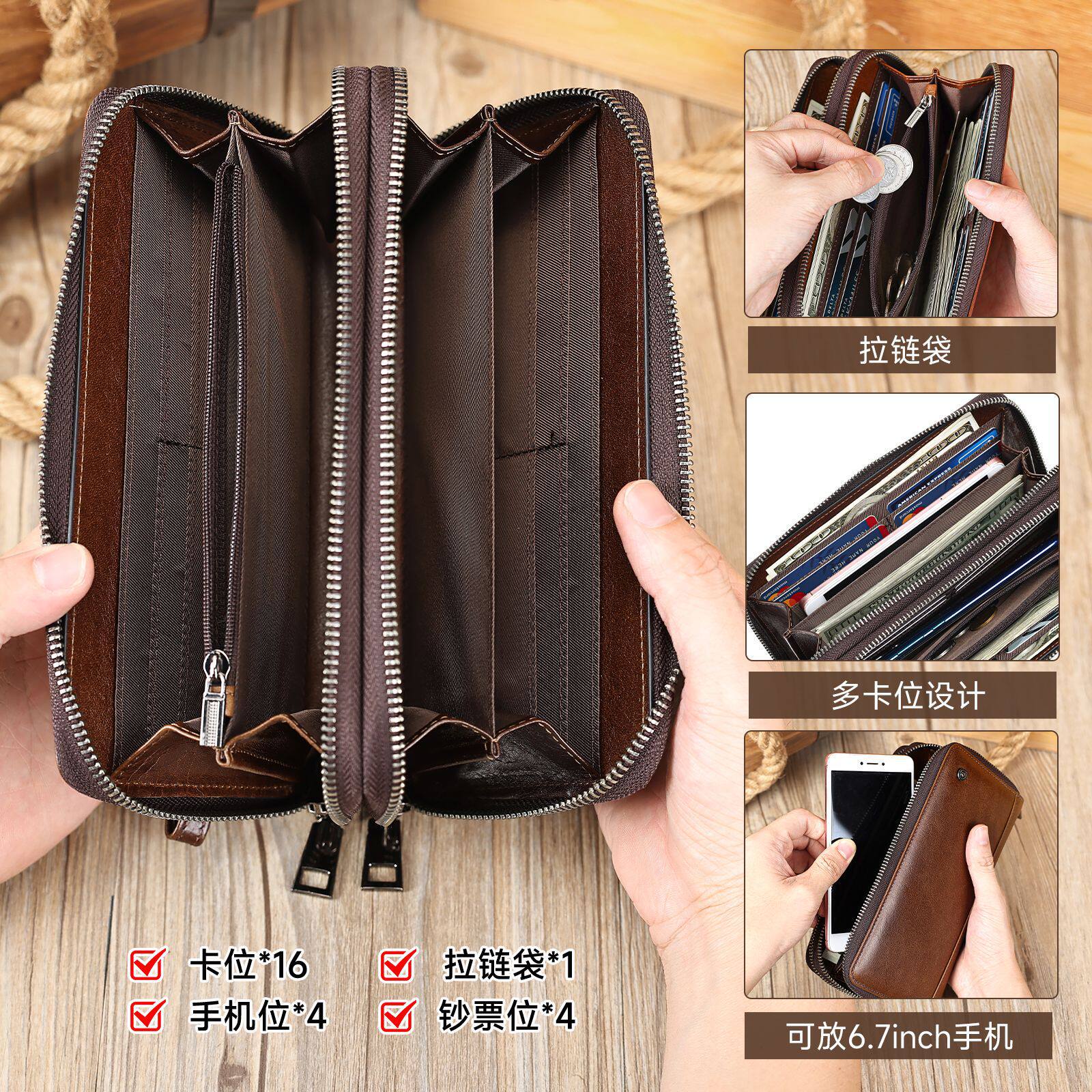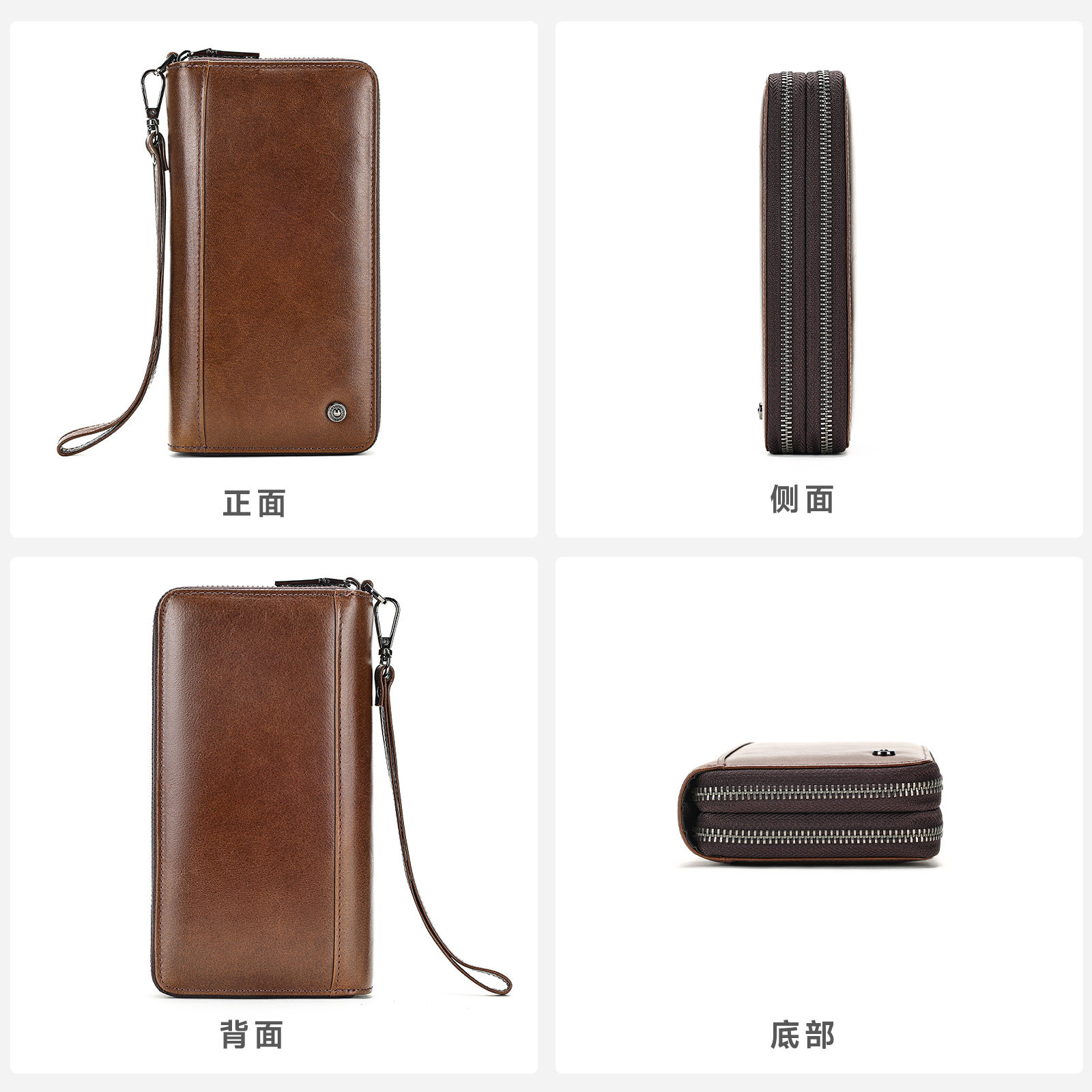 玛轮特男士真皮钱包高级感双拉链多功能油蜡皮手拿包多卡位卡包潮
