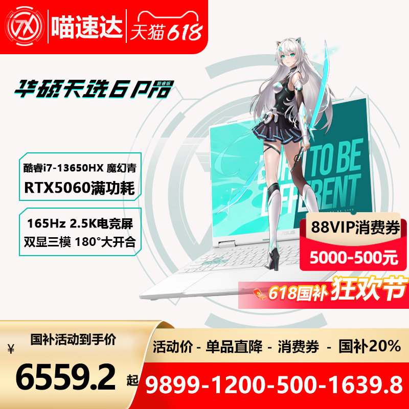 喵速达电器官方旗舰店提供的华硕天选6pro5050/5060游戏本,售价在8799元左右,满0元减0元。所属门类:笔记本电脑。备注:【政府补贴国补15%】华硕天选6 Pro 英特尔5050酷睿HX 16英寸AI电竞游戏本笔记本电脑RTX5060独显学生设计本 ...... 查看全文