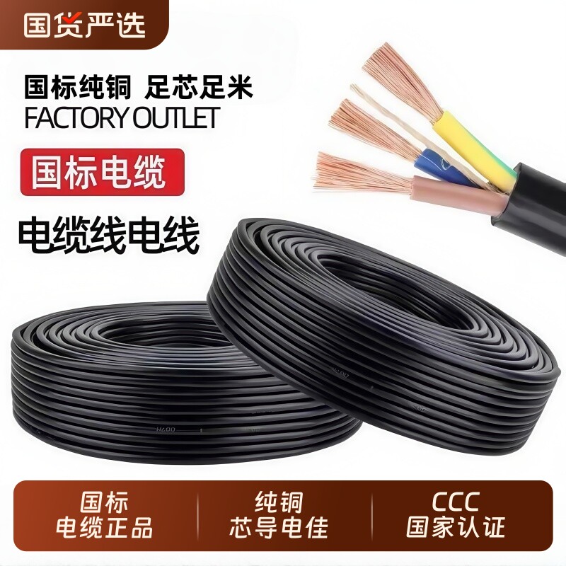 工业电线电缆批发部提供的工程国标电缆线2芯3芯三相电源线,售价在7元左右,满10元减5元。所属门类:护套线。备注:户外国标电缆线RVV护套软线2芯3芯1.5 2.5 4 6平方户外三相电源线 ...... 查看全文